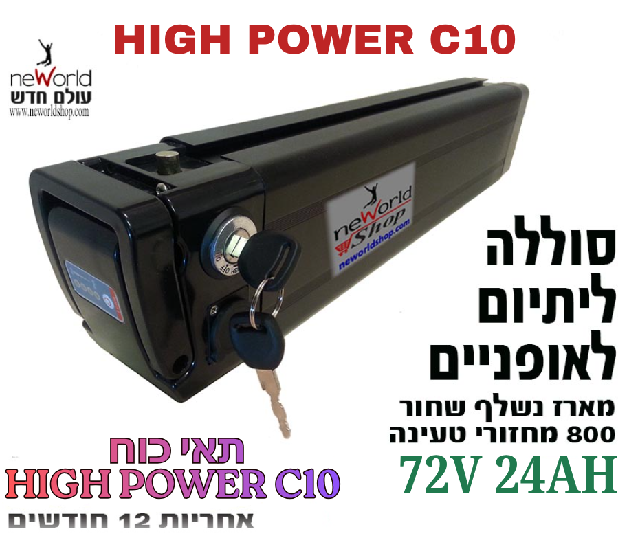 סוללה לאופניים חשמליים מתאי כוח C10 – 72V 24AH עם מארז נשלף / אורך 77 ס"מ